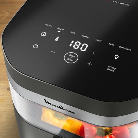 Avec ses 8 programmes automatiques (airfry, griller, rôtir, pâtisserie, toaster, déshydrater, réchauffer, surgelés), sa fonction maintien au chaud et son hublot de visualisation, il devient vite indispensable. Antiadhésif et compatible lave-vaisselle, son panier s'entretient sans effort.