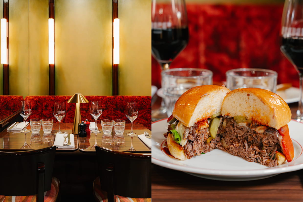 Dans un décor feutré qui évoque l'Orient-Express, le restaurant Rouge invite au voyage en terres aveyronnaises. Là-bas, on se retrouve entre amis pour partager un os à moelle XXL, un plateau de viandes signature préparé par le chef Yahya El Azaar, ou encore une belle côte de bœuf. Sur le menu, les grands gourmands apprécient l'élégante mention aux "frites à discrétion".