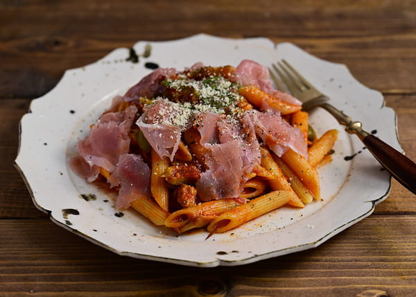 Il ne reste qu'à verser les penne égouttées dans la sauce, à bien mélanger... et à se régaler ! Et si vous souhaitez vraiment retrouver le plaisir d'un plat de coquillettes jambon-fromage, vous pouvez aussi ajouter un peu de gruyère râpé. Après tout, les Italiens sont habitués à ce qu'on prenne quelques libertés !