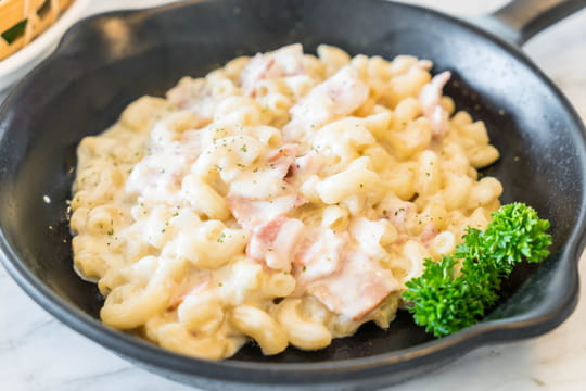 Vous vous en doutiez sûrement, nos voisins italiens ont eux aussi pensé à associer les pâtes avec de la crème et du jambon blanc. En revanche, dans leur recette, vous ne trouverez aucune coquillette. Ce plat est si bon que les Italiens s'en lèchent les babines : ils l'ont donc surnommé "penne al baffo", qui signifie littéralement les "penne à la moustache". Monelle Godaert, alias @not_so_superflu, en est fan. Pour les dimanches soirs où elle a la flemme de cuisiner, "il n'y a pas meilleur", promet la créatrice de contenu en vidéo. Dans les commentaires, tout le monde est conquis : "ça va être ma recette de ce soir !" ; "réalisée ce soir : trop bonne et ultra rapide, merci !" ; "je la fais dès que je ne sais pas quoi manger". Vous allez voir qu'en quelques bouchées, vous oublierez vos coquillettes adorées...