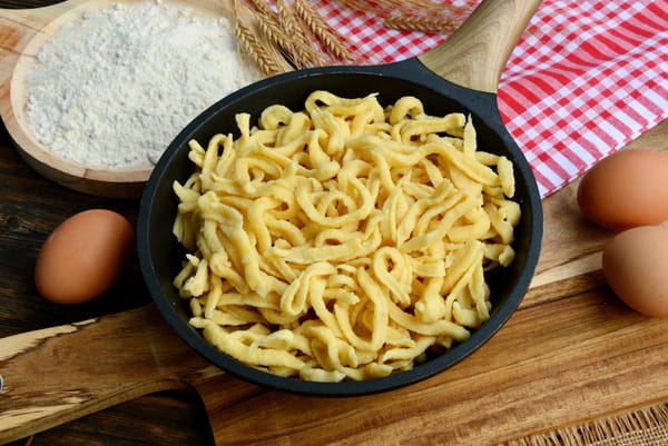 En Alsace, on n'utilise pas des spaghettis classiques dans les soirées carbo. On préfère de loin la générosité de ces pâtes du cru...