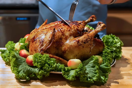 Pour le réveillon de Noël, vous voyez grand. Toasts de saumon fumé et verrines maison à l'apéritif, noix de Saint-Jacques poêlées aux agrumes en entrée : voici comment débutera le bal des festivités. Pour les plaisirs sucrés, vous prévoyez un panettone et une bûche glacée, ainsi que des chocolats pour accompagner le café. Mais avant cela, vos convives découvriront "la" pièce maîtresse de votre menu : un magnifique chapon fermier, acheté à prix d'or chez votre boucher. Vous l'imaginez bien doré sur le dessus, et extrêmement moelleux en bouche. Mais en cuisine, vous hésitez : faut-il le cuire au four ou en cocotte ? à 150 ou 180°C ? Pas de panique ! Dans un épisode des Carnets de Julie, l'animatrice Julie Andrieu explique pas à pas comment bien s'y prendre avec cette volaille, pour qu'elle soit à la fois bien rôtie, et tendre à souhait.
