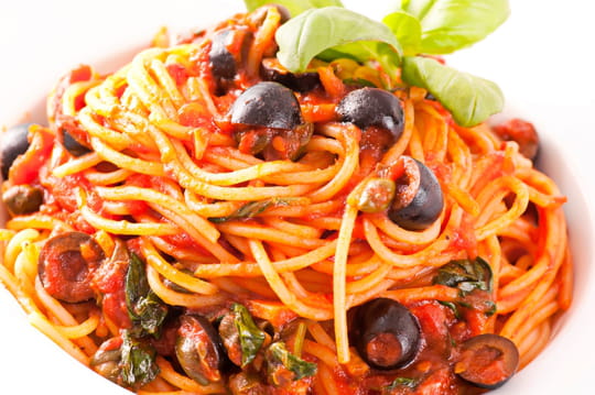 Si elle est peu connue en France, la recette des spaghettis alla puttanesca est iconique en Italie. Il faut dire que son histoire est assez rocambolesque. Selon la légende, le nom un peu provocant de cette recette, qui signifie... "à la putain", viendrait de Naples. On raconte que les prostituées la préparaient dans leurs cuisines pour faire flotter dans la rue de bonnes odeurs d'ail, de tomate et d'anchois, afin d'attirer les clients (ou pour reprendre des forces). Une autre explication, plus pragmatique, affirme que la recette est née par manque de temps. Les ingrédients utilisés se conservaient facilement : tomates en boîte, olives, câpres, anchois. Pas besoin de faire les courses. Voilà pour la petite histoire. Place à la recette.
