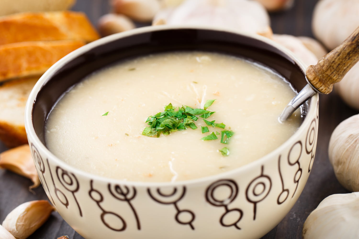 Originaire du Sud-Ouest, plus précisément du Périgord, le tourin à l'ail est sans conteste le meilleur allié des lendemains de fêtes ! Autrefois servi aux jeunes mariés juste après leur nuit de noces pour éponger leur éventuelle gueule de bois, cette soupe à l'ail rustique exercerait des propriétés digestives, antioxydantes et hépatoprotectrices, attribuées aux composés soufrés de notre alliacée. La recette de Laurent Mariotte, partagée à l'occasion de la nouvelle année, tombe à point nommé !