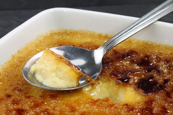 Pour réaliser ce dessert, le chroniqueur commence par fouetter ensemble 5 jaunes d'œufs et 100 grammes de sucre blanc dans un saladier, jusqu'à ce que le mélange blanchisse. Il fait ensuite légèrement tiédir 50 centilitres de crème liquide, dans lequel il verse 2 à 3 cuillère à soupe de son ingrédient secret, afin de le laisser s'infuser. Il incorpore ensuite cette crème parfumée dans son mélange jaunes d'œufs sucre. Il ne lui reste qu'à verser l'appareil dans 4 ramequins individuels, puis à enfourner pour 1 heure de cuisson à 100°C. Après la cuisson, il laisse ses crèmes brûlées refroidir au réfrigérateur pendant 4 heures. Il ne lui reste plus qu'à les saupoudrer de sucre roux et à les colorer au chalumeau.