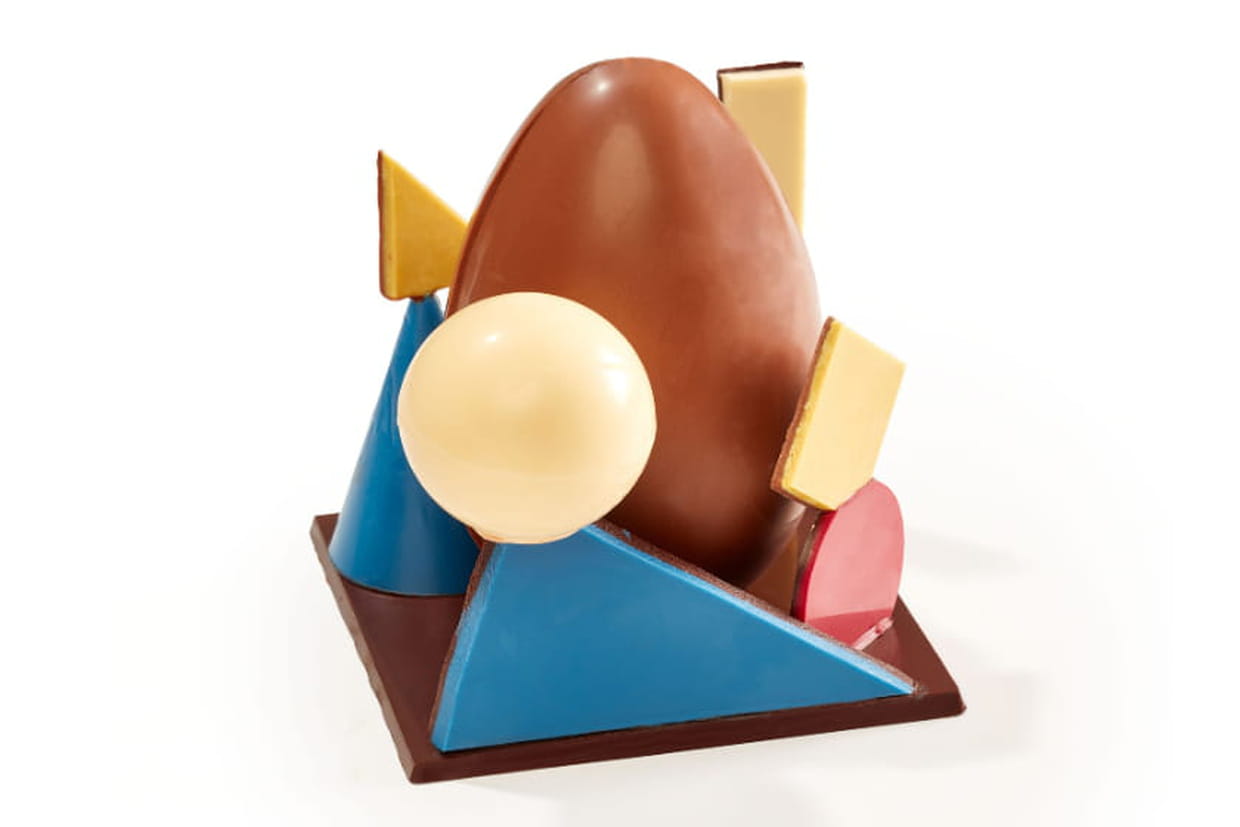 Pour fêter ses 50 ans, la chocolaterie Jadis et Gourmande a imaginé un œuf inspiré de l'architecture Bauhaus. Sphères, triangles et cercles de chocolat s'imbriquent ensemble, pour un moment de gourmandise graphique.