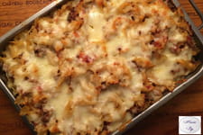 Gratin de pâtes à la viande : bœuf, poulet, jambon