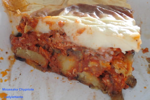 Moussaka d'aubergines, pommes de terre, porc et de boeuf, béchamel
