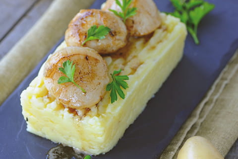 Écrasé de Princesse Amandine à l'huile de truffe et St jacques