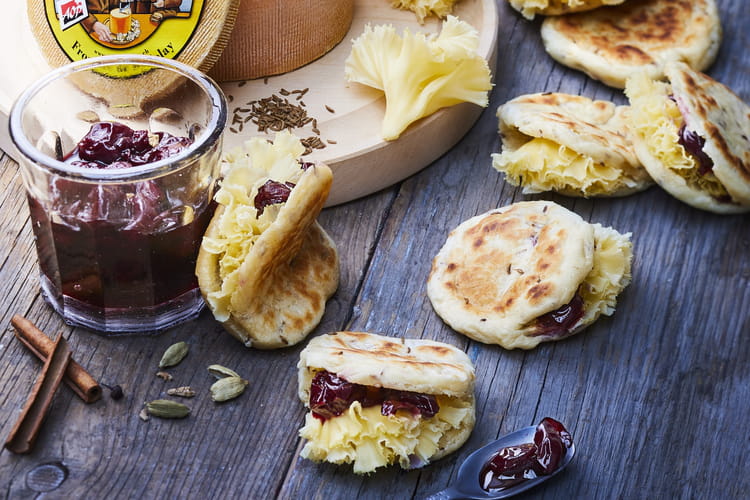 Naan aux graines de cavi, chutney de cerise et Tête de moine AOP