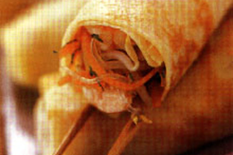 - 2 Epluchez et coupez les carottes en fine julienne, nettoyez le soja. Faite cuire les légumes 3 minutes à l’eau bouillante salée, égouttez-les, rafraîchissiez-les sous l’eau froide.