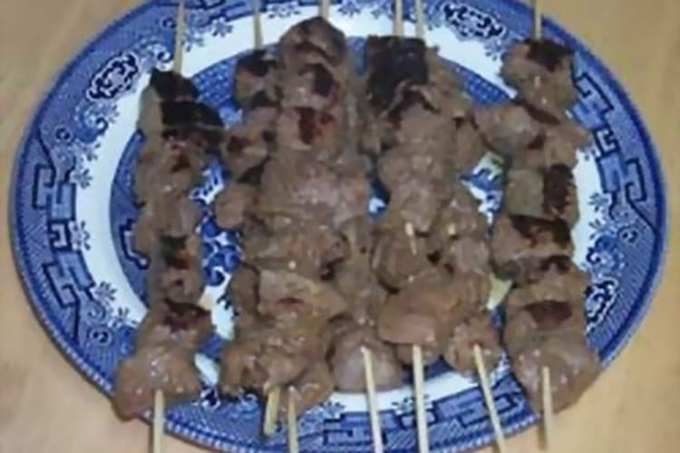 - 2 Egoutter la viande et piquer sur des piques à brochettes.