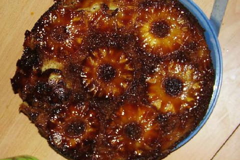 Pour finirVerser la pâte dans le moule. Mettre au four pendant 45 minutes. Démoulez chaud et arroser avec le reste de jus d'ananas.