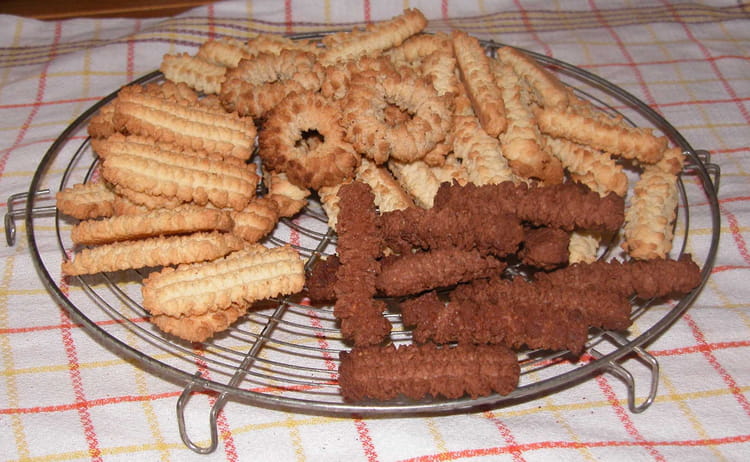 Pour finirLes Spritz doivent avoir une couleur très claire, être à peine dorés sur les arêtes pour être parfaits au goût. Réutiliser les feuilles alu pour les fournées suivantes. Pendant qu’une fournée cuit, en préparer une autre. Faire refroidir 1 bonne heure avant d’entreposer dans une boîte métallique hermétique. Compter 2 heures pour cuire l'ensemble de la fournée.