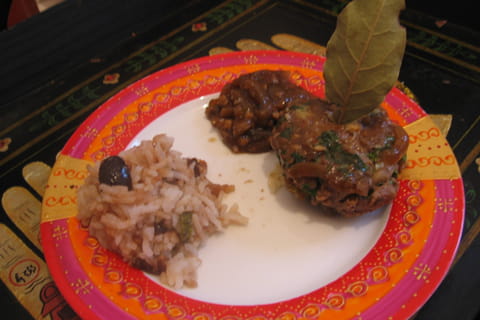 - 2 Mélanger le boeuf haché et la coriandre ciselée. Ajouter les épices, le poivre, les pignons concassés. Bien mélanger.