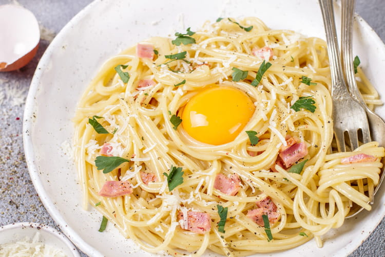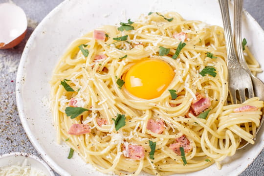 J'adore préparer les spaghettis carbonara comme ça ! Au mascarpone, lardons et un jaune d'œuf par-dessus, miam, un régal ! C'est à la fois simple, rapide et tellement bon !