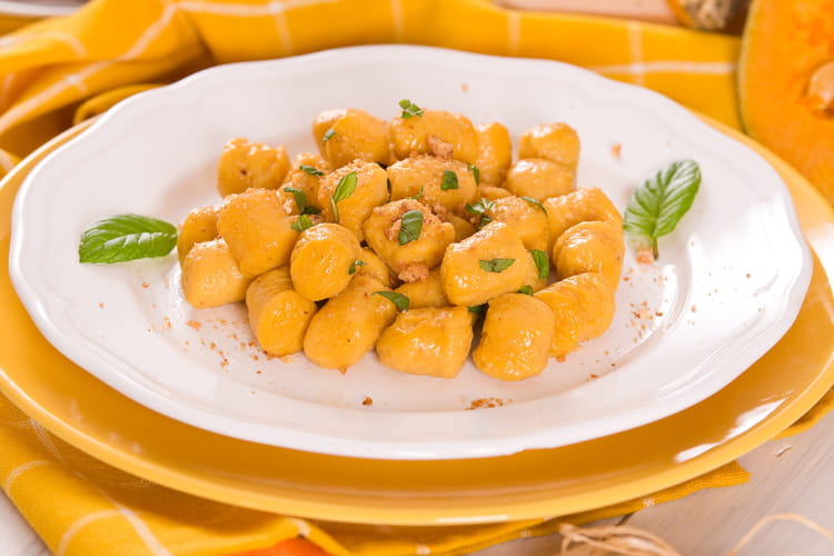 De délicieux gnocchis maison à base de butternut, moelleux et savoureux, relevés d'une touche dorée de chapelure grillée et de basilic frais pour une finition simple et goûtue.