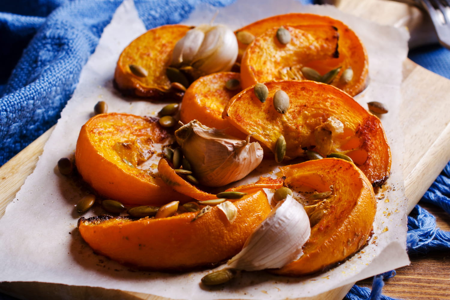 Une recette réconfortante où le potiron devient tendre et légèrement caramélisé au four. L'ail apporte une touche aromatique délicate, et les graines de courge croquantes subliment le tout pour un plat gourmand et visuel.