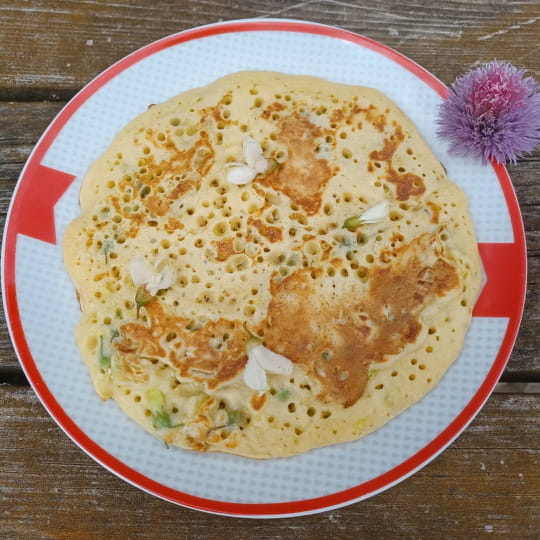 De délicieux pancakes moelleux parfumés aux fleurs d'acacia, parfaits pour un petit-déjeuner ou un brunch printanier.