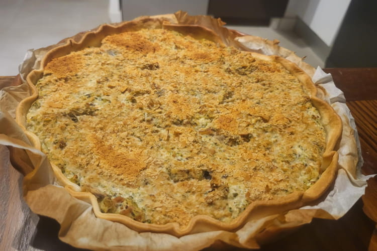 Déposer la garniture dans la pâteDéposer la garniture dans la pâte. Puis soupoudrez de levure maltée afin de donner du croustillant à la quiche.