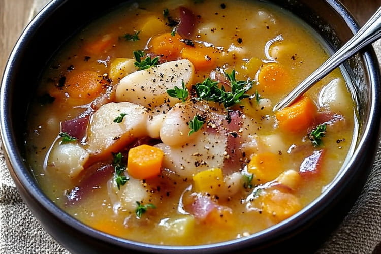 Ma soeur m'a ramenée des hariicots de Tarbes et le temps nettement plus frais m'ont donné l'envie de cette soupe campagnarde bien garnie qui à elle toute seule est un repas complet ! Nous nous sommes régalése et des souvenirs de petites filles ont envahi nos mémoires.