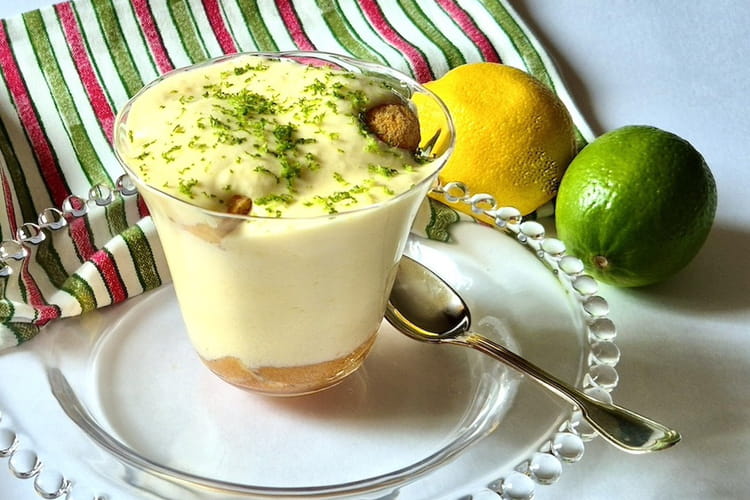 MontageAdditionnez environ 5 cl d'eau au jus de citron dans l'assiette creuse. Coupez les biscuits à la cuiller en deux et trempez-les rapidement un par un dans le jus. Tapissez-en le fond de chaque verre ou coupelle. Répartissez la moitié du mélange crémeux dans les verres. Recommencez avec les biscuits humidifiés et terminez par la crème.