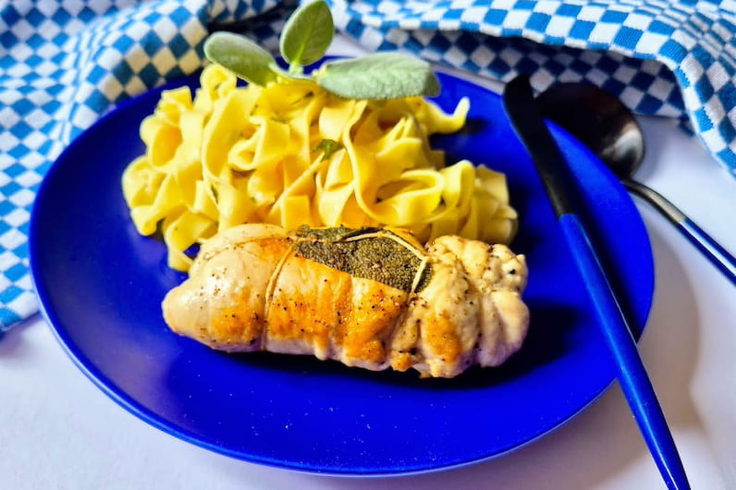 CuissonFaites chauffer l'huile dans une poêle et, à feu vif, faites dorer les paupiettes de tous les côtés pendant environ 5 min. Baissez le feu, couvrez et poursuivez la cuisson une dizaine de minutes à feu doux. Pendant ce temps, faites cuire les tagliatelles dans de l'eau bouillante en observant la durée indiquée sur le paquet ou 3 minutes si elles sont fraîches. Déglacez la poêle des paupiettes avec un trait de marsala ou de porto. Égouttez les pâtes, versez-les dans un plat avec le beurre et, s'il vous en reste, quelques feuilles de sauge (ciselées). Servez les paupiettes, avec leur jus de cuisson, accompagnées de ces tagliatelles.