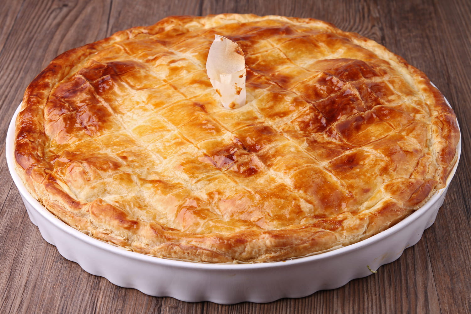 - 3 Découper une petite cheminée au centre et dorer à l’œuf battu.