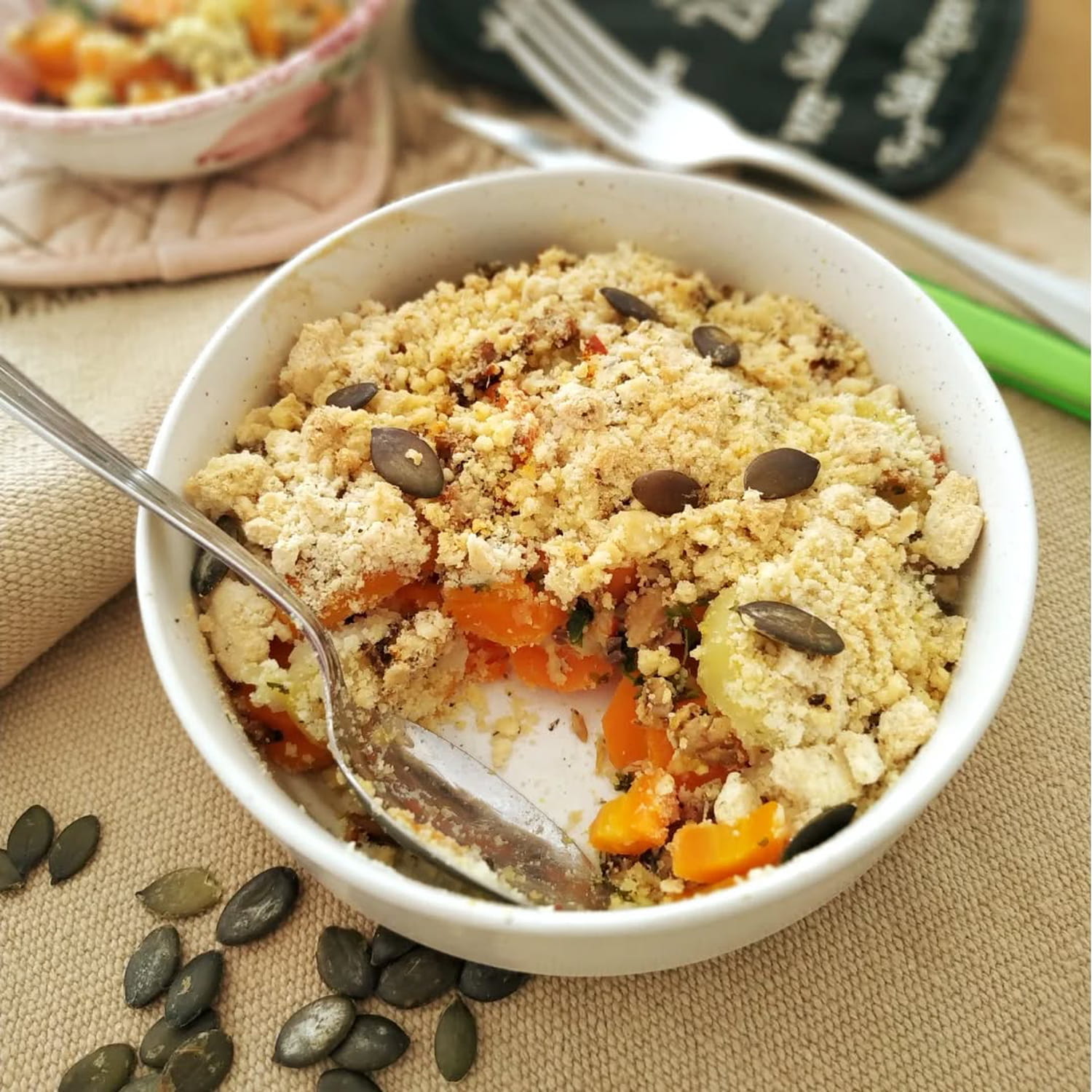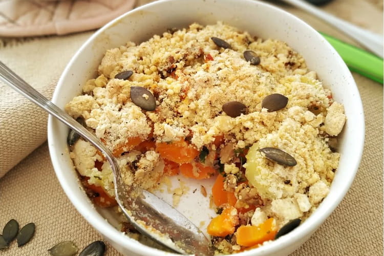 Un plat complet et original qui allie la douceur des légumes fondants, la saveur iodée des sardines et le croustillant d'un crumble salé au parmesan. Idéal pour un repas équilibré et gourmand, accompagné d'une salade verte.