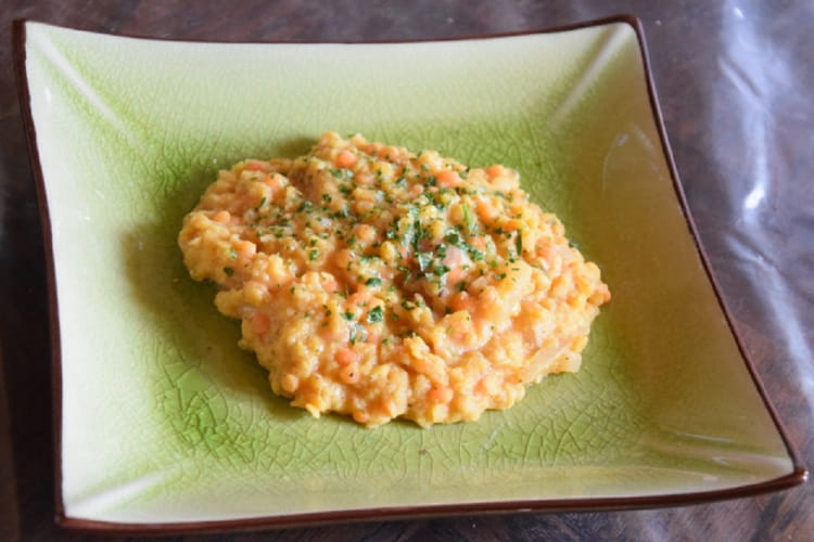 Je vous recommande cette recette de cocotte de lentilles corail au curry, lait de coco et saumon fumé, un vrai délice !