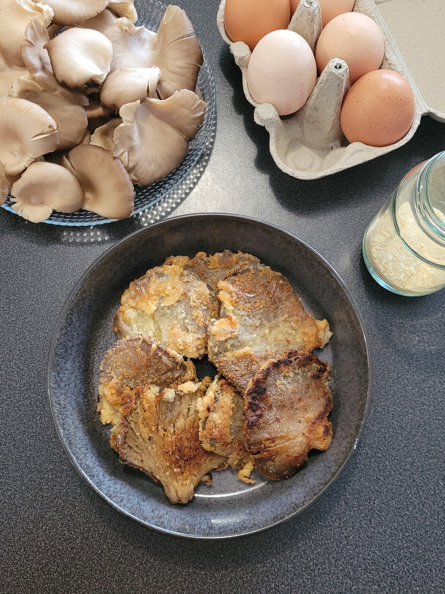 - 4 Trempez vos pleurotes dans les œufs battus puis dans la chapelure.