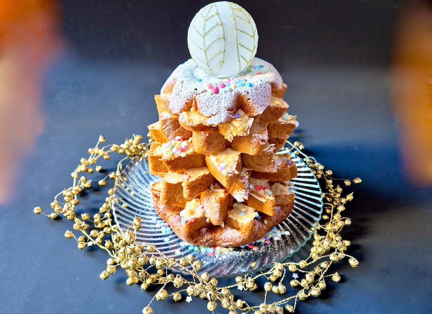 À l'approche de Noël, les grandes surfaces exposent des piles de pandoros (de l'italien pane d'oro, "pain d'or"), ce délicieux gâteau brioché de Noël italien. Parfumé à la vanille, le pandoro est traditionnellement dépourvu de toute garniture, simplement saupoudré de sucre glace. Pour améliorer un pandoro industriel, déguisez-le en arbre de Noël pour le goûter des enfants. Customisez-le à votre guise : crème chiboust ici, mais beaucoup d'entre vous iront de leur crème chocolatée ou autre. Lire la suite