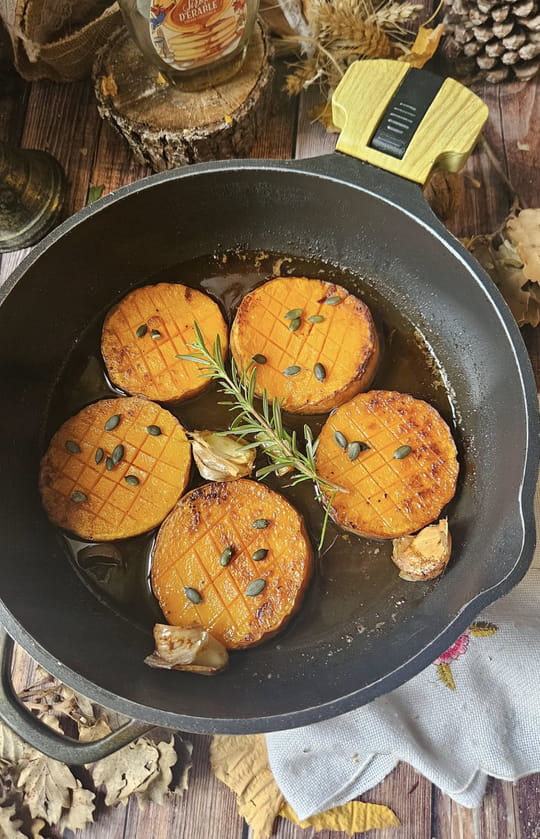 Palets de courge butternut rôtis au sirop d'érable et romarin