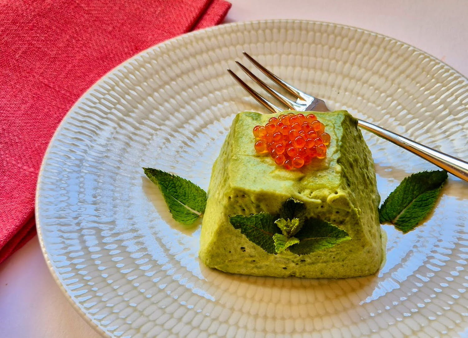 Après les veloutés d'été froids aux petits pois, voici de jolis bavarois individuels, crémeux en diable et qui se marient particulièrement bien avec des œufs de truite ou de saumon, ou même des lamelles de saumon fumé. Une entrée savoureuse et élégante.
