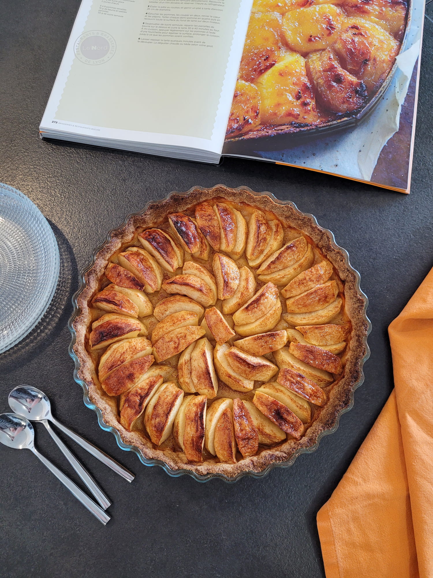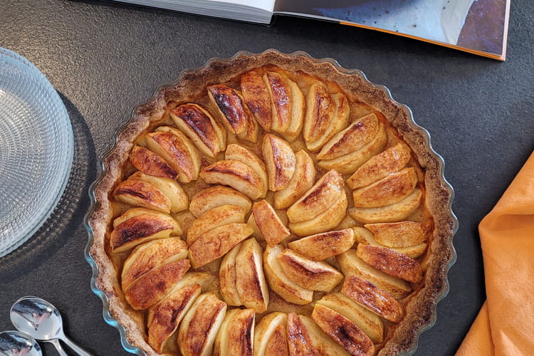 Tarte gourmande aux pommes servie chaude. Elle est très facile, vous pouvez acheter une pâte brisée toute prête, mais elle est toujours meilleure faite maison.