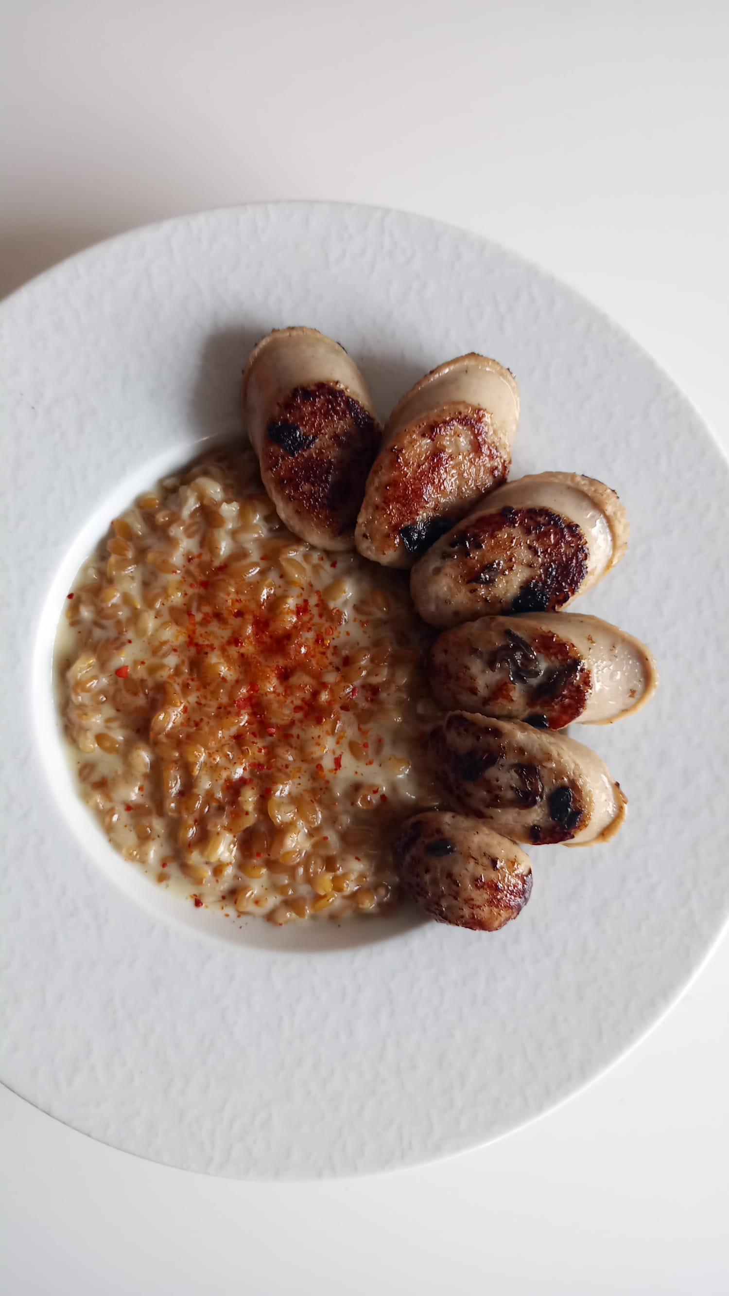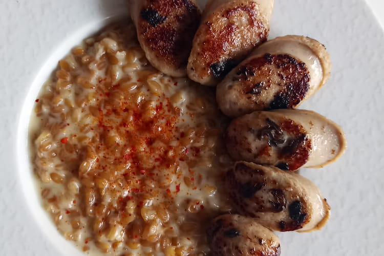 Risotto de petit épeautre et boudin blanc poêlé, une recette automnale gourmande et originale !