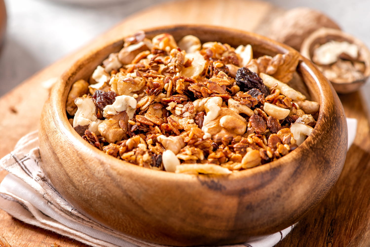 Ce granola maison au airfryer est doré, croustillant et sain pour le petit-déjeuner ou le goûter. Rapide, croquant et savoureux, il se prépare en quelques minutes seulement et se conserve dans un bocal hermétique jusqu'à deux semaines.