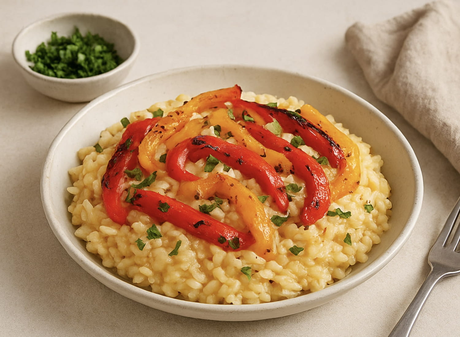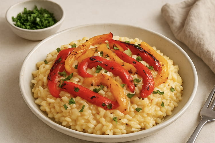 Un risotto crémeux avec des poivrons grillés, parfait pour un diner savoureux.