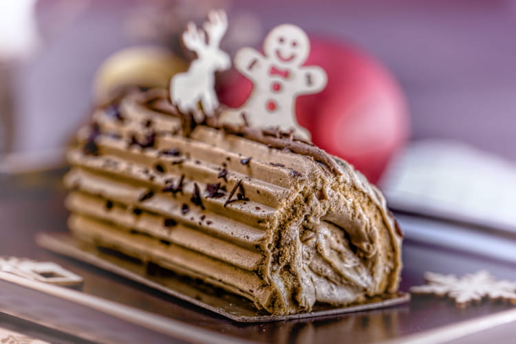 Recouvrir et décorer la bûcheÉtaler le reste de crème sur toute la surface, passer une fourchette pour un joli effet et saupoudrer de morceaux de chocolat pour la gourmandise. Réfrigérer au moins 3 heures avant de servir pour une tenue parfaite.
