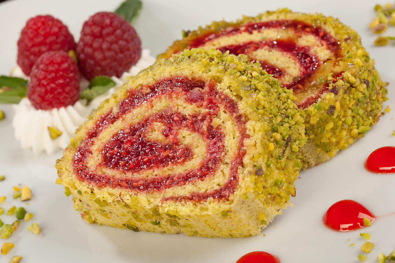 Recouvrir la bûche et laisser reposerÉtaler une fine couche de crème de pistache sur l’extérieur de la bûche. Presser délicatement la bûche dans les pistaches concassées. Mettre au réfrigérateur au moins 3 heures pour une tenue parfaite et des saveurs optimales.