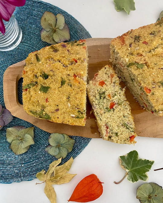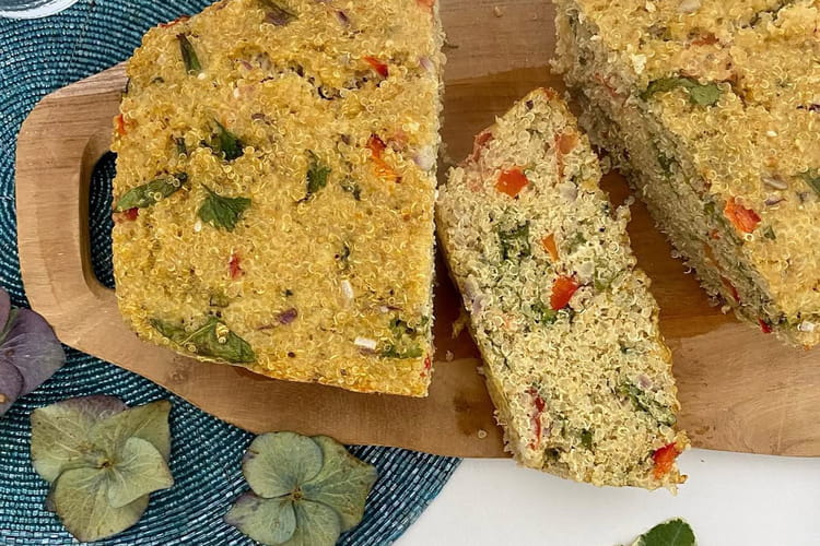 Un cake salé végétarien, moelleux et nourrissant, à base de quinoa et de légumes frais. Parfait pour un repas léger accompagné d'une salade ou pour un pique-nique.