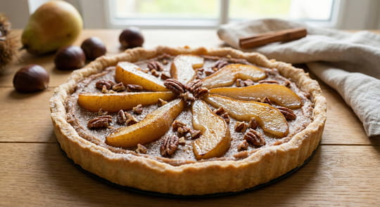 Une ode à la gourmandise hivernale. Cette tarte allie le fondant de la poire à la douceur réconfortante de la crème de marrons. Le croquant des noix de pécan apporte la touche finale à ce dessert qui réchauffe les cœurs. Une recette familiale revisitée pour sublimer les fruits de saison. Lire la suite