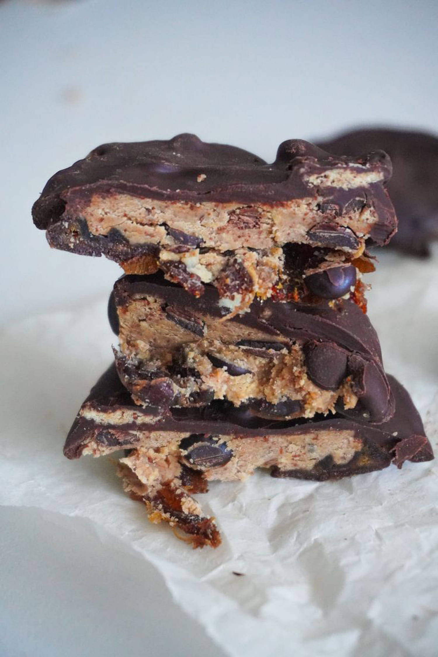 Snikers cookie dough vegan, healthy, avec 4 ingrédients et sans cuisson. Cette recette, c'est clairement le mariage parfait entre snack sain et gourmand.