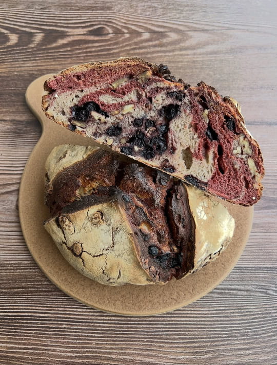 Pain au levain marbré aux bleuets et pécans