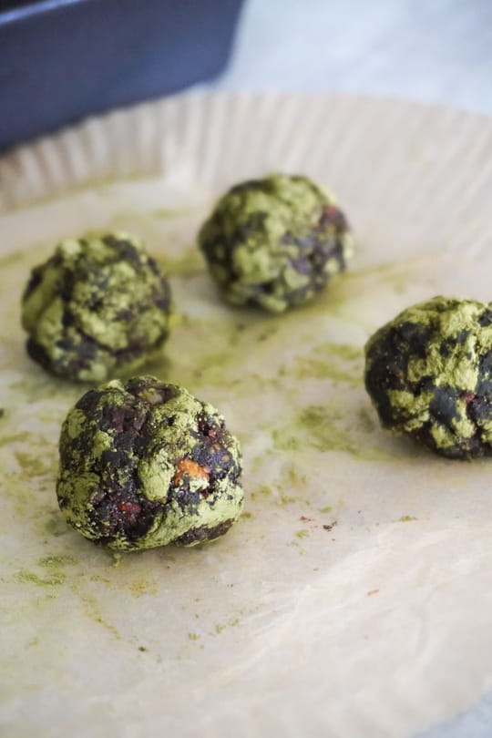Optionnel : saupoudrer ou rouler dans du matcha pour l'esthétique -