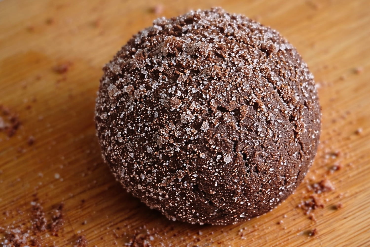 Former les boulesPrendre environ 1 cuillère à soupe de pâte. Former une boule. Rouler dans le sucre.