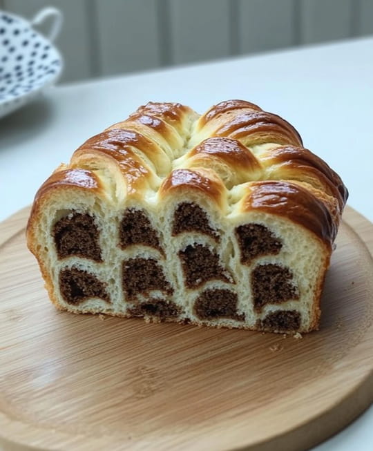 Amusez-vous avec cette brioche léopard, une douceur visuellement surprenante et délicieuse à déguster au petit-déjeuner ou au goûter !