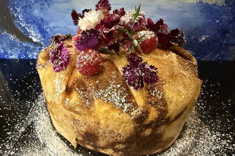 Le Courchevel : l'entremet aux framboises drapé de crêpes
