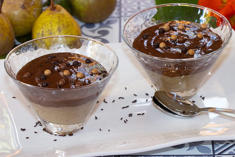 Compote de poires Belle-Hélène et sa mousse au chocolat