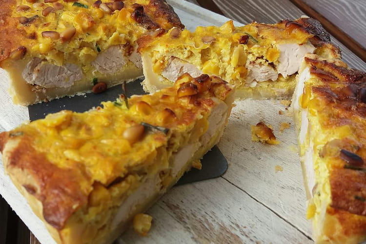 Tarte au poulet, maïs et curry